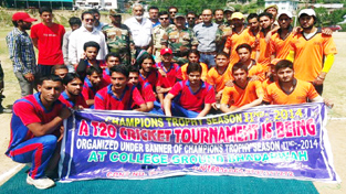 BHADARWAH, June 7: Continuing with its efforts to uplift youth by providing them opportunity to showcase their talent, Rashtriya Rifles located at Bhadarwah under the aegis of the Counter Insurgency Force (Delta) and Youth Combined Cricket Club Bhadarwah, organized T-20 Cricket Championship namely 2nd Edition of Champions Trophy T20 Cricket Tournament, which got underway at Government Degree College Ground, Bhadarwah, here today.