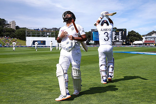 India 1st Innings: 165 allout in 68.1 overs (Ajinkya Rahane 46; Kyle Jamieson 4/39).
