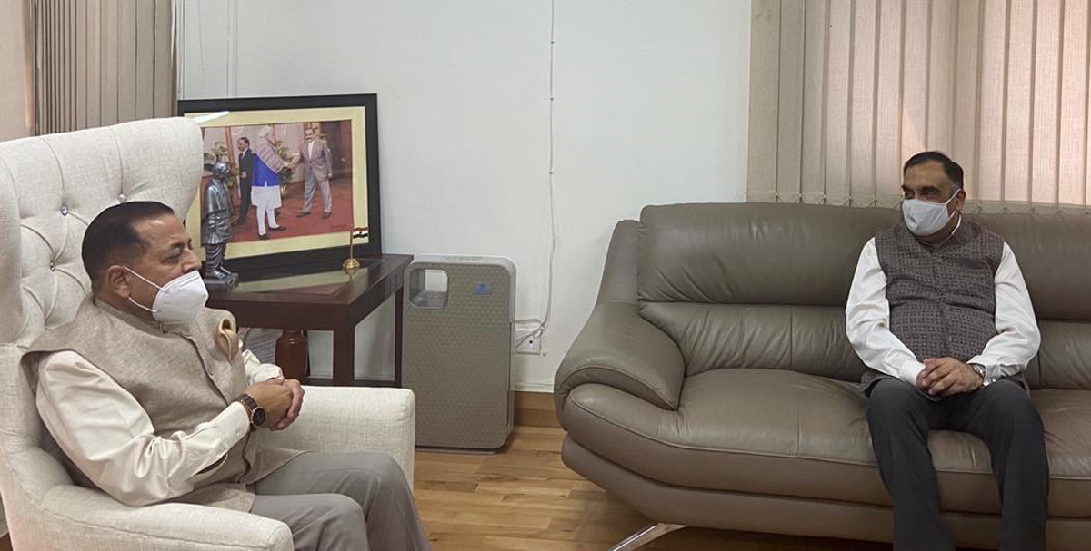 Newly appointed Chief Information Commissioner of India, Yashvardhan Kumar Sinha calling on Union Minister Dr Jitendra Singh, on Sunday.