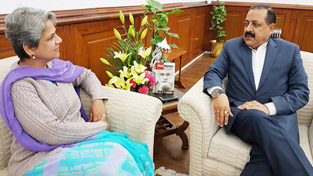 Newly appointed Director of Lal Bahadur Shastri National Academy of Administration (LBSNAA), Mussoorie, Upma Chaudhary calling on Union Minister Dr Jitendra Singh, at North Block, New Delhi on Monday.