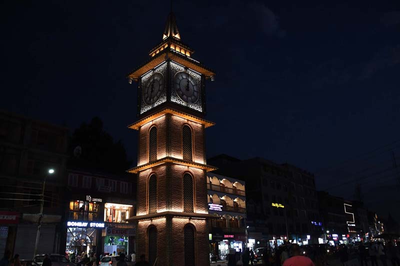 Newly constructed Ghanta Ghar in Lal Chowk and it’s adjacent buildings present a beautiful look on Monday evening. -Excelsior/Shakeel