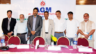 Newly elected Kashmir Chamber of Commerce and Industry executive members along with President posing for a photograph in Srinagar on Saturday. -Excelsior/Amin War