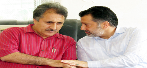 Newly elected president of Jammu and Kashmir Cricket Association (JKCA), Imran Raza Ansari in talks with Divisional Commissioner of Kashmir, Dr Asgar Samoon in Srinagar on Monday. -Excelsior/Amin War