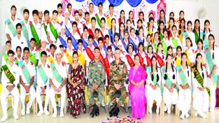 Newly elected Students' Council of APS Ratnuchak posing for a group photograph alongwith the dignitaries on Friday.