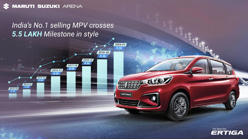 It has maintained the market leadership over the last 2 years with over 5.5 Lakh customers. Ertiga has created a stronghold in the MPV segment with a market share of nearly 47 per cent in FY20-21 till September 20.