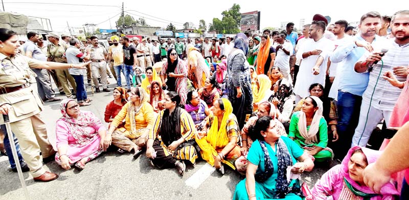 The protestors sat on dharna in the middle of National Highway and disrupted the traffic movement on it for more than two hours. The protestors were raising slogans against the district administration, Pollution Control Board (PCB), District Industries Centre, Kathua and RK grinding cement based Klinker Industry. They registered the strong protest and were demanding shifting of Red Category RK Grinding Industry which is being set up in populated areas to another area as it will directly effect ten thousand population and four schools, some offices and business establishments functioning in the area.