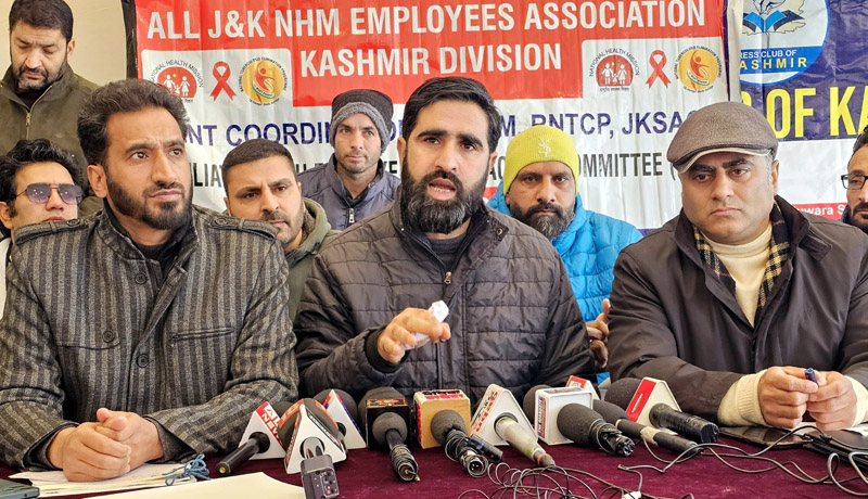 Addressing a press conference, Abdul Rauoof, Chief Spokesperson of the All J&K NHM Employees’ Association, Kashmir, said that employees have repeatedly raised their genuine grievances before successive governments for over two decades, particularly the absence of a job policy, glaring salary disparity and lack of social security.