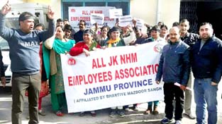 Besides Jammu, the annoyed employees held protests in all the blocks of Jammu division against the delaying tactics of the higher authority of the Health Department in conceding the demands of the NHM employees.