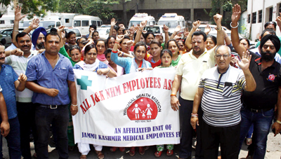 Among others who addressed the protesting employees include Dr Sumit Paul, Dr Rakesh, Manjeet Singh, Bharat Bhushan Bhagat, Jasmail Singh, Neelam Jamwal, Surinder Khajuria and Vijay Kumar.