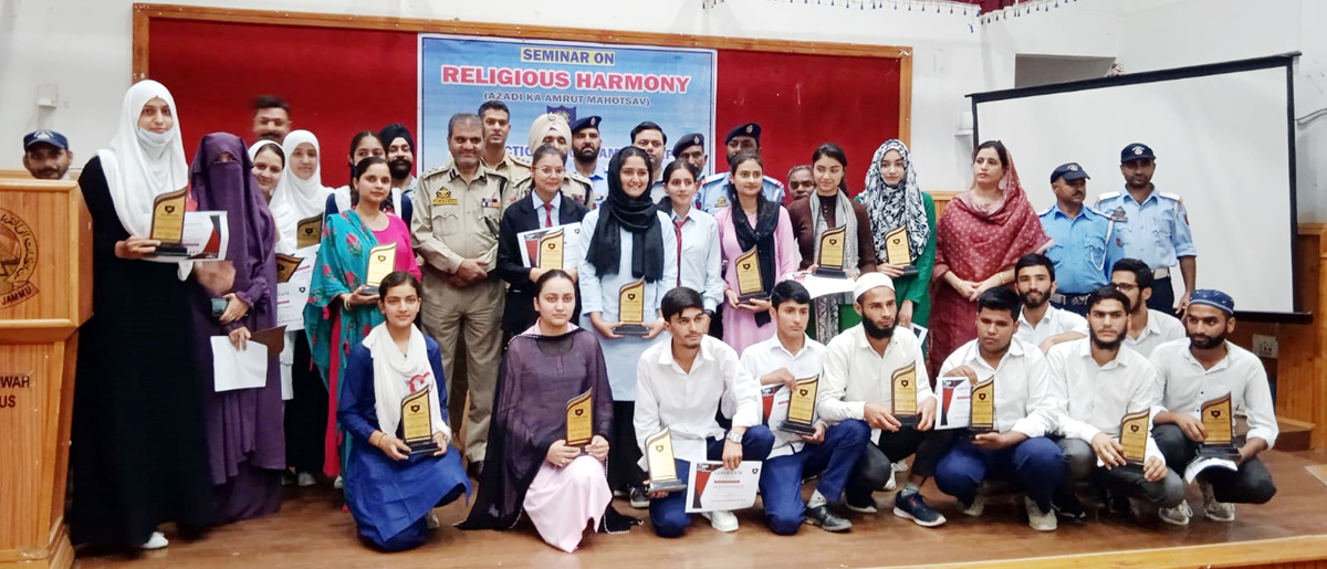 BHADERWAH, July 28: Traffic Police National Highway Ramban organized a seminar on the topic “Religious Harmony” in university Campus Bhaderwah in connection with the celebration of ‘Azadi Ka Amrit Mahotsav’ in which scores of students from various institutions participated.