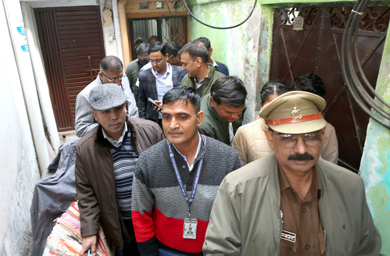 NIA team conducts raid at the residence of Delhi blast mastermind Shaheen at Khandari Bazaar, Lalbagh in Lucknow on Monday. (UNI)