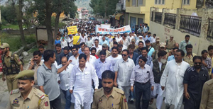 BHADERWAH, Aug 26: Mohammed Sharief Niaz MLA Bhaderwah held a peace rally in Bhaderwah, joined by number of people of all religions, castes and students of various schools, today.