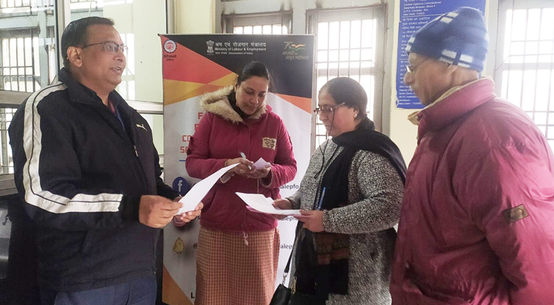 Mohinder Singh retired from NHPC having PPO No. LDASR00019697 visited the office to update her Digital Life Certificate which was updated. Madan Singh an Ex employee of M/s Sanghvi Woods Pvt. Ltd. appeared with a request for updating his bank KYC and claim submission. His KYC request was submitted and the same was approved by his Employer and his claim was also submitted.