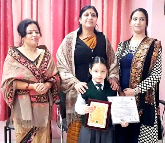 Principal, Delhi Public School Jammu, Ruchi Chabra presented the award to little Nigarish in the morning assembly in presence of her mother to boost her morale. Headmistress, Meenu Gupta was also present on the occasion.