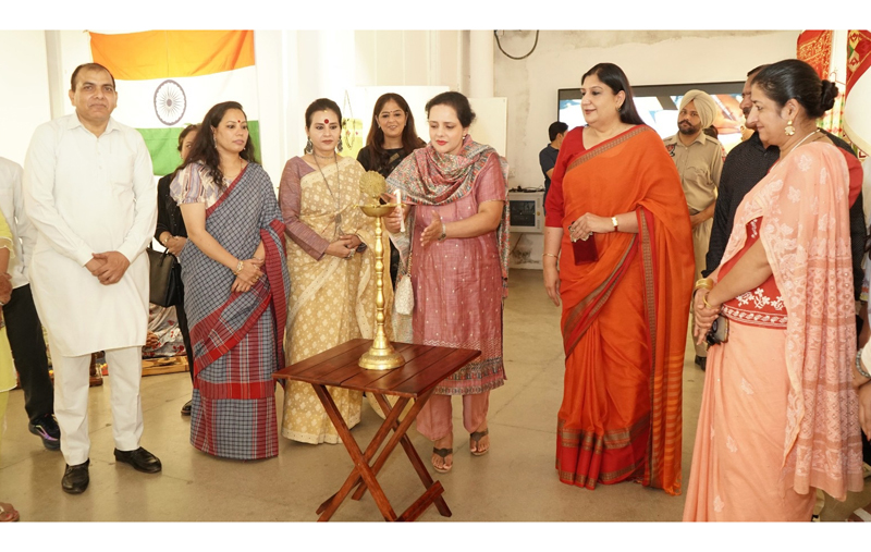 The event aimed to honor and promote India’s rich handloom heritage and the entire venue was transformed into a vibrant celebration of Indian heritage, featuring beautiful displays of phulkari, khadi, woven carpets, sarees, khes and live weaving demonstrations at Charkhas and weaving looms.