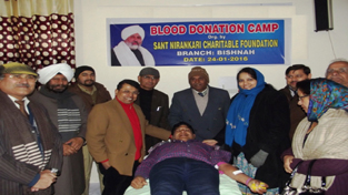 JAMMU, Jan 24: Sant Niran-kari Charitable Foundation organized a voluntary blood donation camp at Sant Nirankari Satsang Bhawan, Bishnah and donated 100 units of blood.