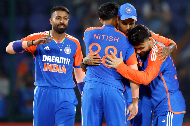 NEW DELHI, Oct 9: Nitish Kumar Reddy announced himself on the international stage with a flamboyant 74 as a youthful Indian side delivered yet another commanding performance to thrash Bangladesh by 86 runs in the second T20I here on Wednesday.