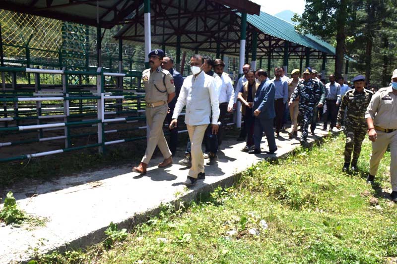 The Principal Secretary, accompanied by Divisional Commissioner Kashmir, Pandurang K Pole, and HoDs of Health and Tourism Department, inspected Nunwan base camp and took stock of pitching of tents, security deployment, sanitation facilities, electricity and drinking water supply. He also inspected the arrangements at frisking point Sarbal.