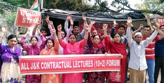 JAMMU, Mar 21: The ongoing chain hunger strike by the Contractual Lecturers (10+2) today completed 400 days even as there has no response from the State Government towards their demand for regularization.