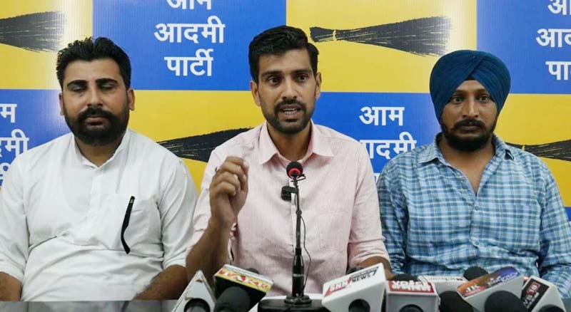 AAP leader Pratap Jamwal interacting with media persons at Jammu on Sunday.