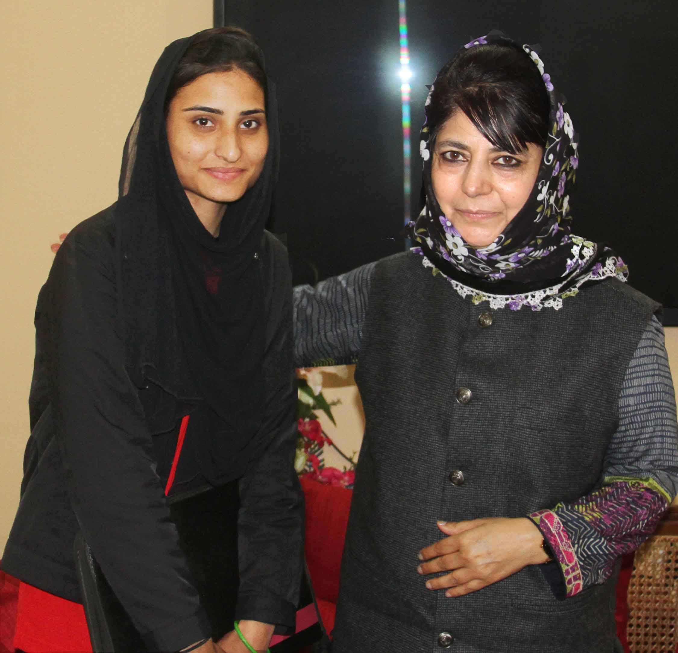 JAMMU: Sumaya Kousar, the North Zone silver medalist in climbing met the Chief Minister, Mehbooba Mufti here today.