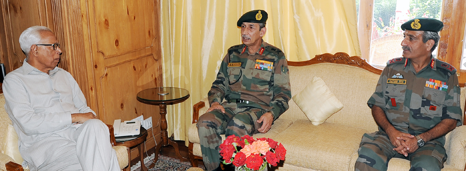 SRINAGAR: Lt. Gen. D.S. Hooda, Army Commander, Northern Command, accompanied by Lt. Gen. S.K. Dua, GOC 15 Corps,  met Governor N.N. Vohra at the Raj Bhavan here today.