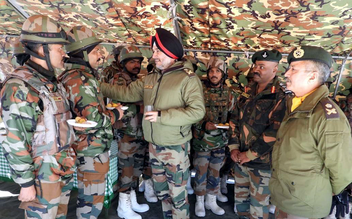 Srinagar based Defence spokesman, Colonel Rajesh Kalia, said that during his interaction with the troops, Lt Gen Ranbir Singh lauded their professionalism, sharp vigil along the Line of Control and high morale while exhorting them to remain alert and fully prepared for all eventualities.
