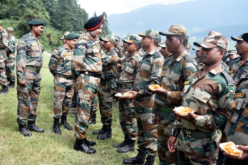 Northern Command chief Lt Gen Ranbir Singh inter-acting with troops.
