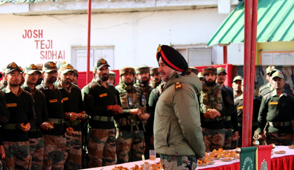 Northern Command chief Lt Gen Ranbir Singh during his visit to an Army formation in Kashmir on Thursday.