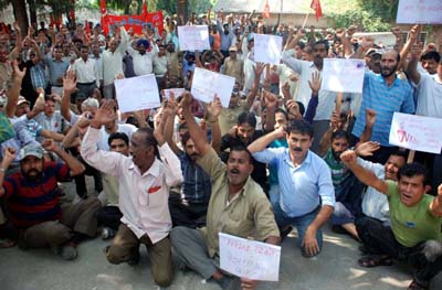 JAMMU, Oct 8: Northern Railway Employees Association today held a mass protest demonstration under the chairmanship of Vijay Singh to oppose FDI in pension. A protest rally was also taken out, which culminated at DTM office, Narwal.