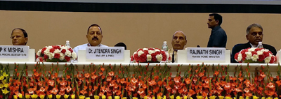 Union Ministers Rajnath Singh and Dr Jitendra Singh at the inaugural session of two-day Civil Services Day. Also seen are Addl Principal Secretary to PM P.K. Misra, Cabinet Secretary P.K.Sinha, Union Secretary DoPT B.P. Sharma and Secretary ARPG C. Viswanath.