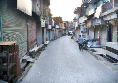 Deserted look of Nowshera town on Friday.