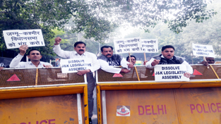 NPP activists staging protest near Parliament on Friday.