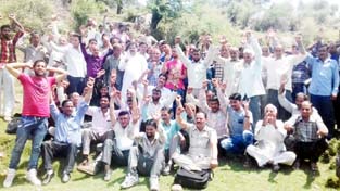 NPP leader, Harsh Dev Singh interacting with people during visit to Ramnagar constituency on Tuesday.
