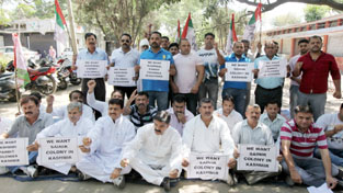 NPP leaders and workers staging protest against Kashmir bandh call of separatists in Jammu on Thursday. -Excelsior/Rakesh
