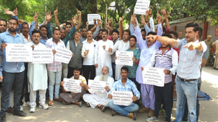 Amidst raising of anti-BJP slogans, the infuriated protesters also torched the effigy of the BJP-PDP combine and sought immediate repatriation of the illegally settled foreigners from the Dogra soil.