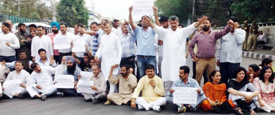 JAMMU, Mar 18: Seeking immediate arrest of all culprits involved in the murderous assault on NPP Chairman and former Minister, Harsh Dev Singh and his wife, a large number of Panthers Party workers today held a massive protest outside the residence of DGP on Railway Road here today.