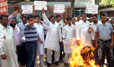 While raising slogans of “Gaddar BJP, Hai Hai”, “Chh-orho Hamara Jammu Pradesh, Rohingyas Jaao Bangladesh”, ‘Rohingyas, Bangladeshis Go Back’, they torched the effigy of the BJP and sought repatriation of the illegally settled foreigners without any further delay.