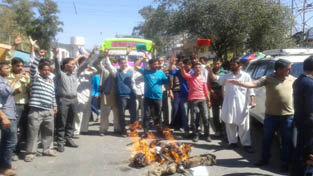 The activists of NPP assembled at Dhar Road and burnt the effigy of Dr Nirmal Singh, Deputy Chief Minister, who also holds the portfolio of Power Ministry. The protestors alleged that coalition Government hiked the power tariff by three to four times in the district Udhampur.
