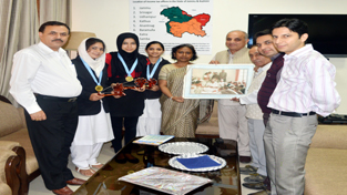 NSS Volunteers posing for a group photograph alongwith Sangeeta Gupta, Principal Commissioner Income Tax in Jammu on Tuesday.