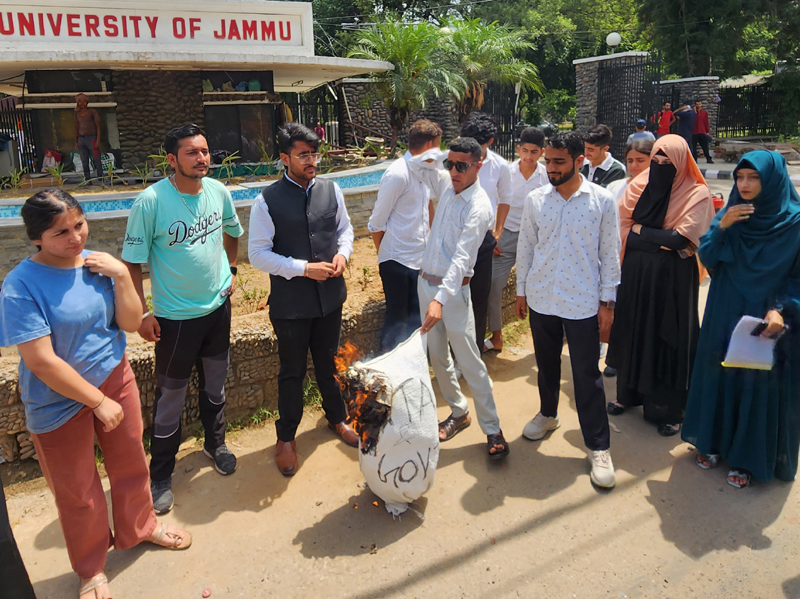 NSUI activists protesting outside Jammu University on Monday. — Excelsior/Rakesh By Daily Excelsior - June 13, 2023 Share FacebookTwitterWhatsAppPinterestLinkedinCopy URLTelegramEmailTumblrReddItPrintKoo NSUI activists protesting outside Jammu University on Monday. — Excelsior/Rakesh Follow our WhatsApp channel