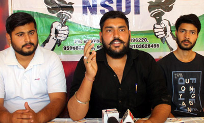JAMMU, May 10: Alleging that the concerned authorities misbehaved with the some candidates and did not allow them to appear in the NEET examination on May 6, NSUI today demanded re-conduct of the Medical entrance of affected candidates.