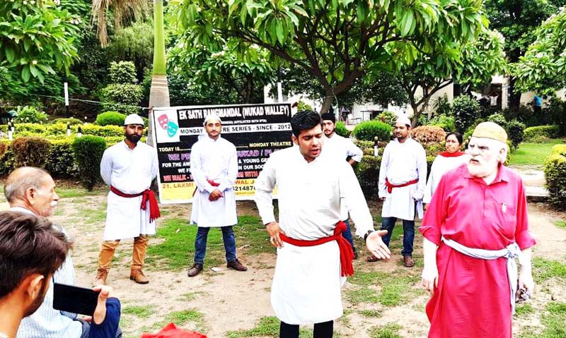 JAMMU, July 15: ‘Ek Sath Rang Mandal’ in collaboration with Vikram Jamwal Foundation here today staged Vijay Malla’s new progressive nukkad play ‘Apuni Soch Badlo’.