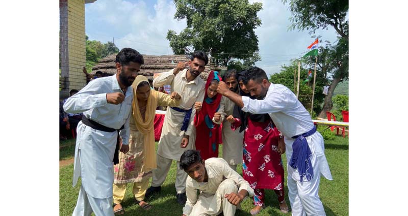 KATHUA, Aug 6: North Zone Culture Centre, Patiala in collaboration with J&K Academy of Art, Culture and Languages organised a musical programme in connection with Har Ghar Tiranga Campaign as the part of Azaadi Ka Amrit Mohotsav at Kartar Public School, Barnoti, followed by the village ‘Mehtabgarh’. In Mehtabgarh the tribes gave a salutation to tricolour amidst chanting of the National Anthem.