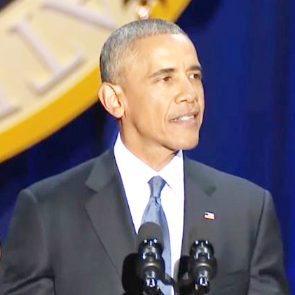 CHICAGO : “Yes, we did. Yes, we can,” was how President Barack Obama today bade goodbye to Americans in an emotional speech, warning them of the threats to democracy from growing racism, inequality and discrimination, in an oblique reference to Donald Trump’s rise to power.