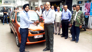 The officials of M/s Peaks Auto Private Limited, launching its latest mid-sized and small car Alto K-10 at State Bank of India (SBI), Jammu Cantt. The car launching ceremony was inaugurated by Sunil Sharma, Chief Manager, SBI, Jammu Cantt, who while speaking discussed the SBI car loan scheme and, gave open offer to all the eligible customers/non-customers to avail car loan facility from SBI, Jammu Cantt branch.