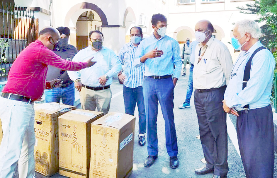 Officials of RVS IT Jammu handing over oxygen concentrators to DC Jammu Anshul Garg. By Daily Excelsior - May 27, 2021 Share FacebookTwitterWhatsAppPinterestLinkedinCopy URLTelegramEmailTumblrReddItPrintKoo Officials of RVS IT Jammu handing over oxygen concentrators to DC Jammu Anshul Garg. Officials of RVS IT Jammu handing over oxygen concentrators to DC Jammu Anshul Garg. Follow our WhatsApp channel