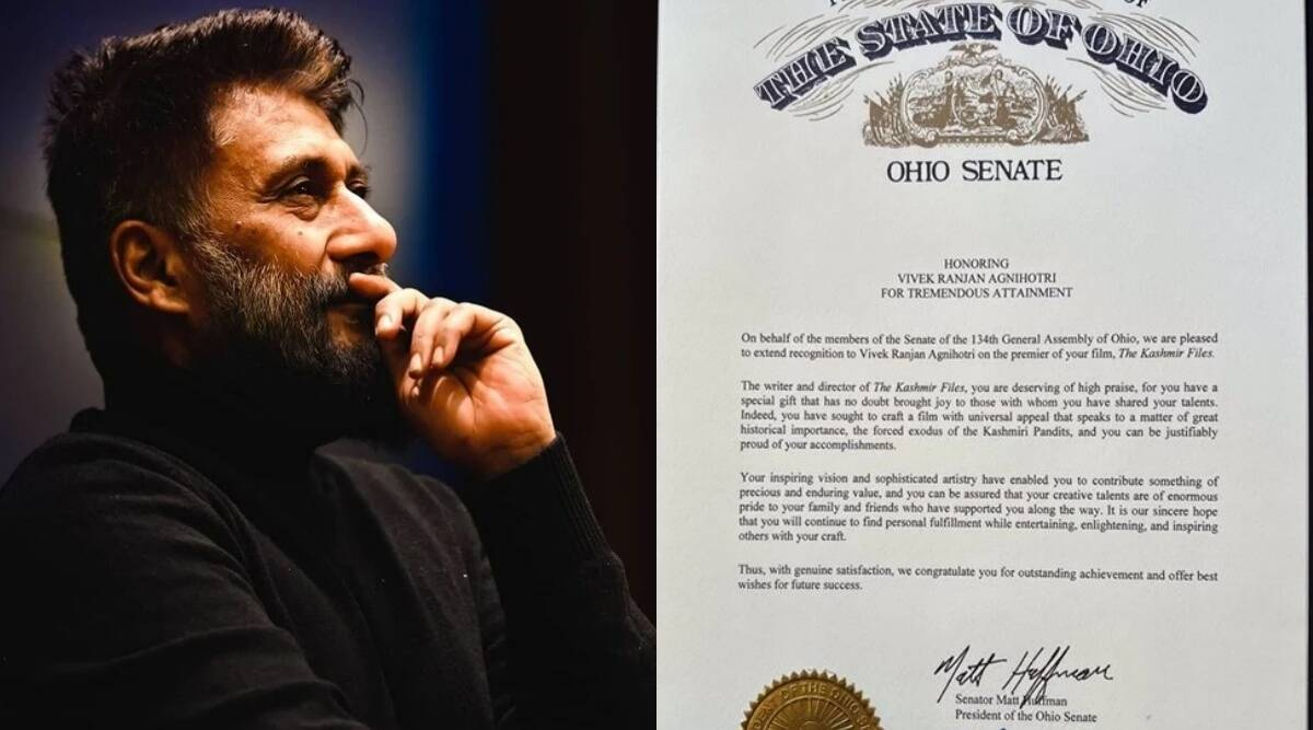 Ohio, State Senator Niraj Atani, said the citation honours Agnihotri for his work on The Kashmir Files, which “depict the genocide” of Kashmiri Pandits from their indigenous homeland.