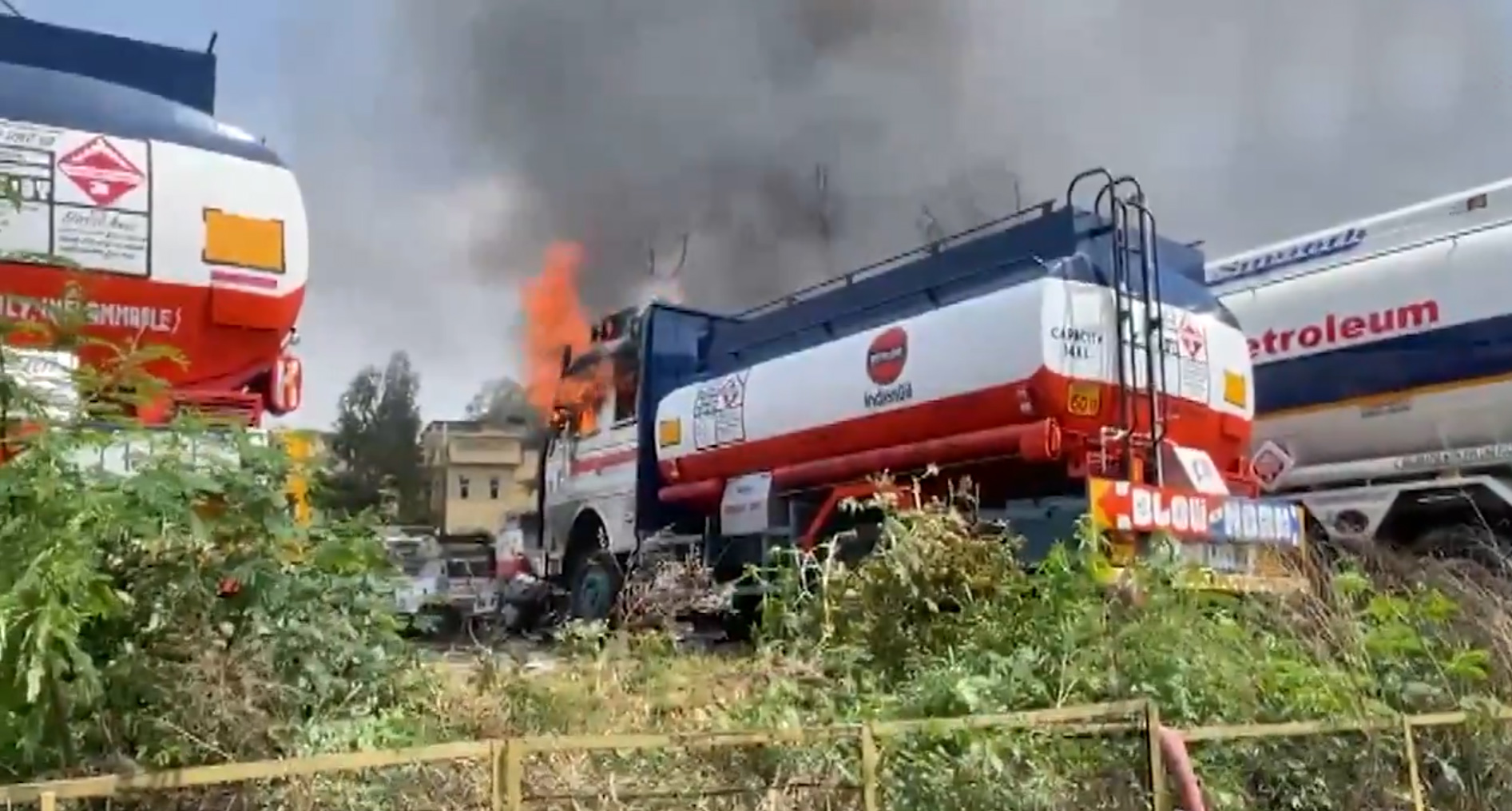 Two tankers containing lesser quantities of oil were gutted in the blaze after they burst into flames, they added.