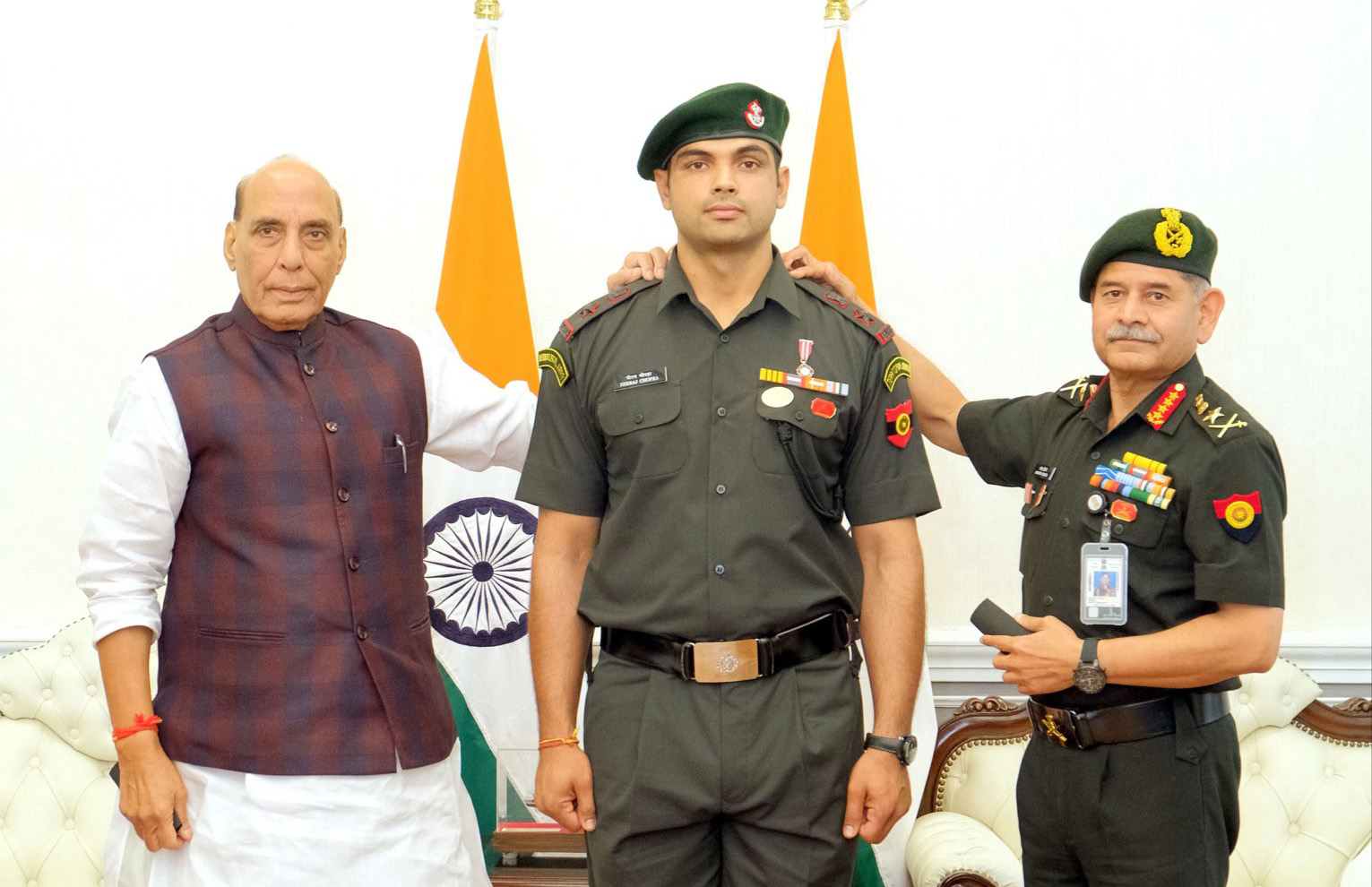 New Delhi, Oct 22: The pipping ceremony of Olympic gold medallist and Lt. Colonel (Honorary) Neeraj Chopra was held on Wednesday in New Delhi, marking another significant milestone in his decorated career. The pipping ceremony was attended by Union Defence Minister Rajnath Singh and Chief of Army Chief (CoAS) General Upendra Dwivedi.